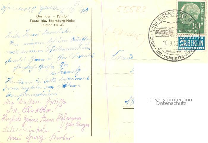 73854085 Ebernburg Bad Muenster am Stein-Ebernburg Gasthaus Pension Tante Ida Die Ebernburg postalisch gelaufen Erhaltung siehe scans [WerneD78] alte Postkarte Wern Katcode 11110007133007