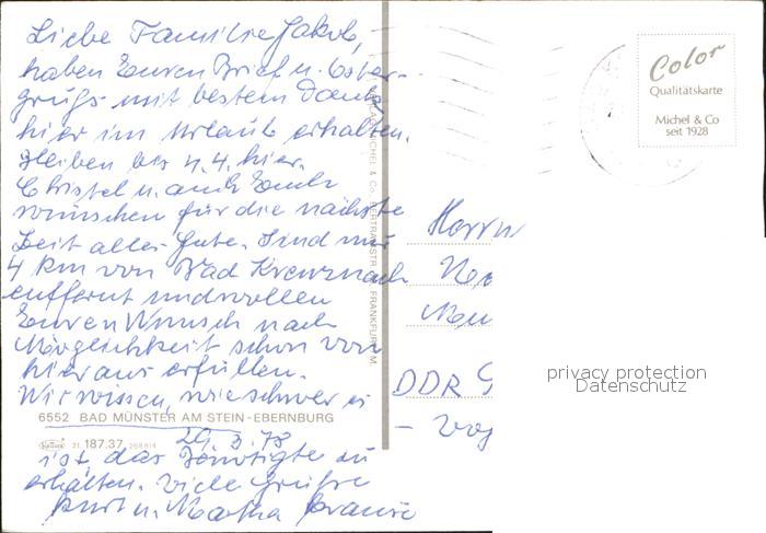 72366073 alte Postkarte Ebernburg Badhaus Burg Nahe Blick vom Rheingrafenstein postalisch gelaufen Erhaltung siehe scans KatCode: 11110007133007