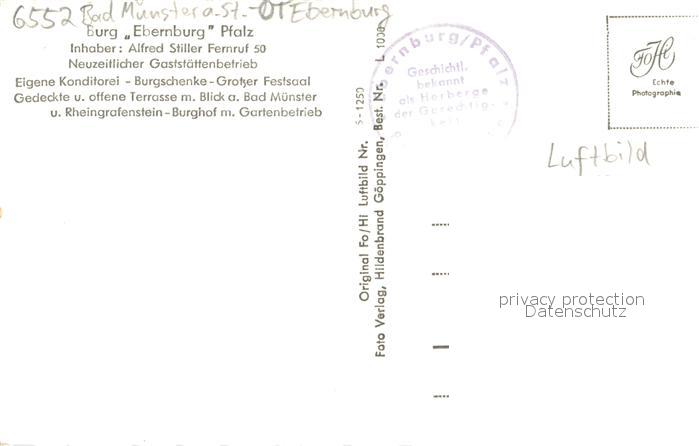 73694557 Ebernburg Burg Ebernburg postalisch nicht gelaufen Fliegeraufnahme Erhaltung siehe scans [FriedD77] KatCode: 11110007133007