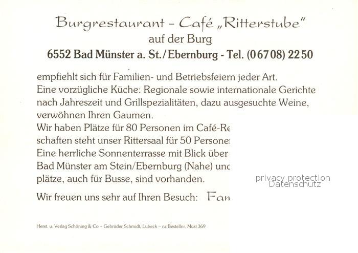 73108217 Ebernburg Burgrestaurant Cafe Ritterstube postalisch nicht gelaufen Werbekarte (keine Postkarte) Erhaltung siehe scans [KathaD81] KatCode: 11110007133007