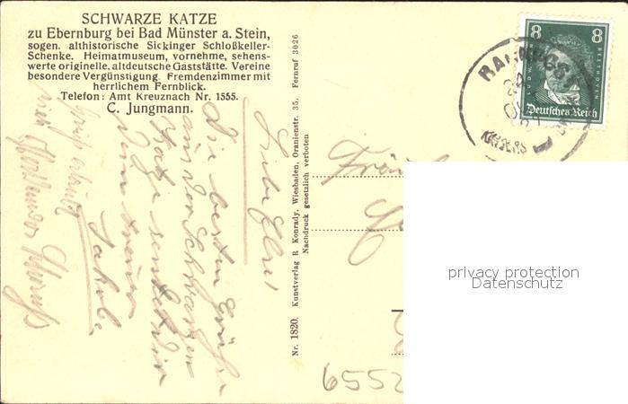 41786215 alte Postkarte Ebernburg Historische Sickinger Schlosskeller Schenke Schwarze Katze Heimatmuseum postalisch gelaufen Erhaltung siehe scans KatCode: 11110007133007