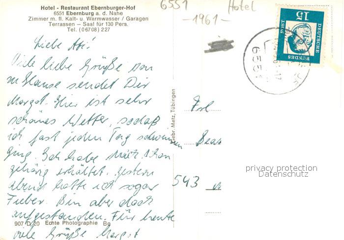 73706010 alte Postkarte Ebernburg Hotel-Restaurant Ebernburger-Hof Aussenansicht postalisch gelaufen Erhaltung siehe scans [LiesaD40] KatCode: 11110007133007