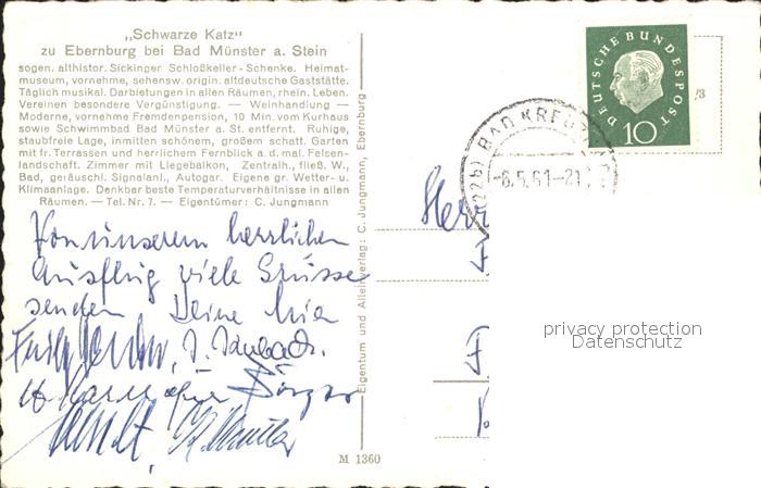72145447 alte Postkarte Ebernburg Restaurant Schwarze Katz postalisch gelaufen Erhaltung siehe scans KatCode: 11110007133007