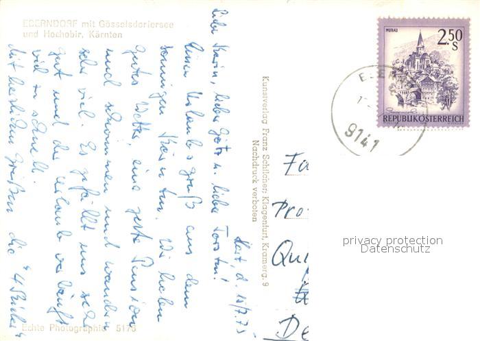 13618863 alte Postkarte Eberndorf Fliegeraufnahme mit Goesselsdorfersee und Hochobir postalisch gelaufen Erhaltung siehe scans [WerneD78] KatCode: 11390213020803