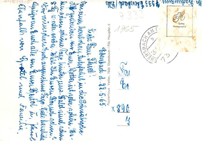 73970989 alte Postkarte Ebersbach Fils Panorama Kirche Freibad Luftaufnahme postalisch gelaufen Erhaltung siehe scans [FriedD77] KatCode: 11110008117018