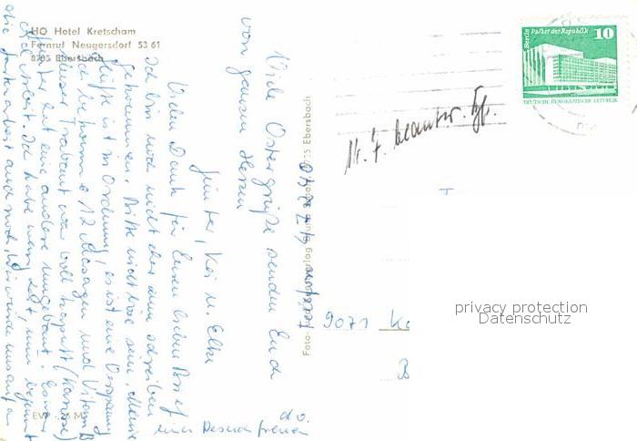 72681503 alte Postkarte Ebersbach Grossenhain Hotel Kretscham postalisch gelaufen Erhaltung siehe scans [LiesaD40] KatCode: 11110014285050