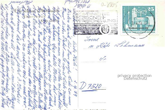 Ebersbach Loebau Oberlausitz Neugersdorf Sachsen Kirche Panorama Fachwerkhaus Bruecke postalisch gelaufen Erhaltung siehe scans [WerneD78] alte Postkarte Wern Katcode 11110014263000
