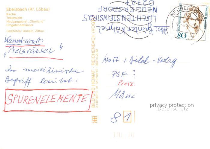 73311891 alte Postkarte Ebersbach Sachsen Kirche Neubaugebiet Oberland Umgebindehaeuser postalisch gelaufen Erhaltung siehe scans [KathaD81] KatCode: 11110014286070