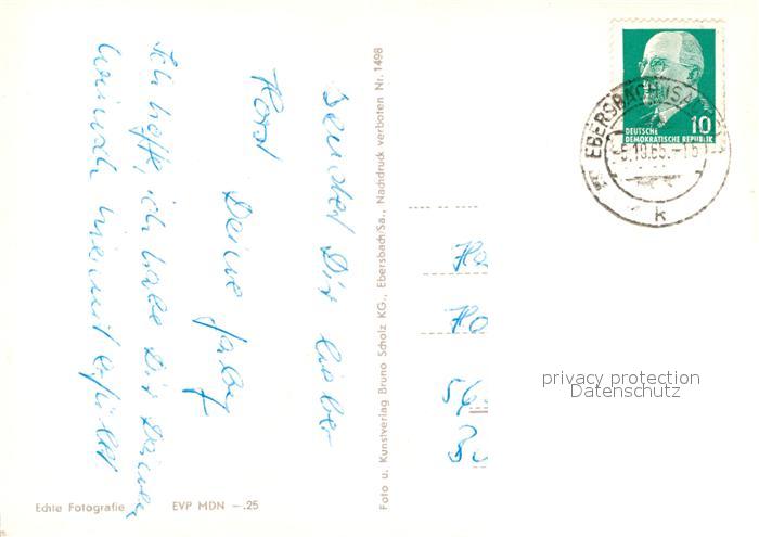 72972346 alte Postkarte Ebersbach Sachsen Kottmarsdorf Schlechteberg Bahnhofstrasse Bahnhof Spreeborn Platz der Befreiung Hainschule postalisch gelaufen Erhaltung siehe scans [FriedD77] KatCode: 11110014286070