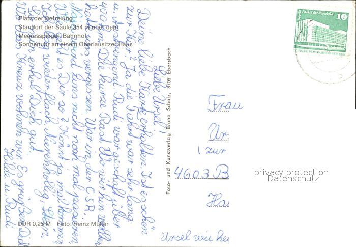 72386208 alte Postkarte Ebersbach Sachsen Platz der Befreiuung Sonnenuhr postalisch gelaufen Erhaltung siehe scans KatCode: 11110014286070