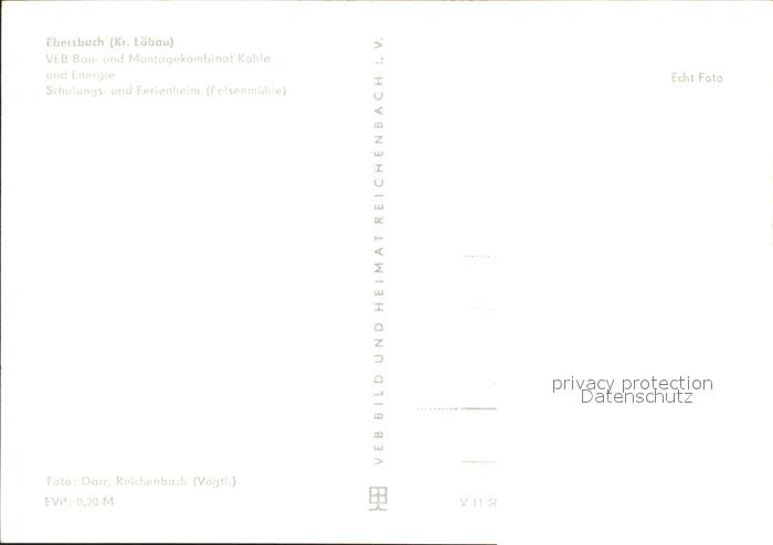 72019169 Ebersbach Sachsen Schulungs- und Ferienheim Felsenmuehle postalisch nicht gelaufen Erhaltung siehe scans KatCode: 11110014286070