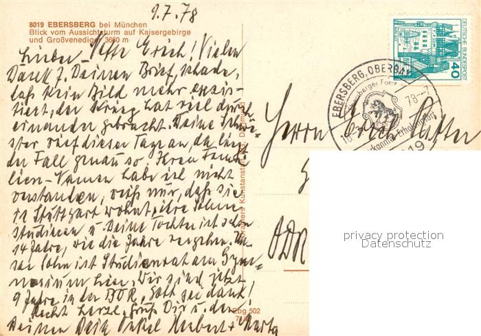 73647146 alte Postkarte Ebersberg Oberbayern Blick vom Aussichtsturm auf Kaisergebirge und Grossvenediger postalisch gelaufen Erhaltung siehe scans [WerneD78] KatCode: 11110009175115