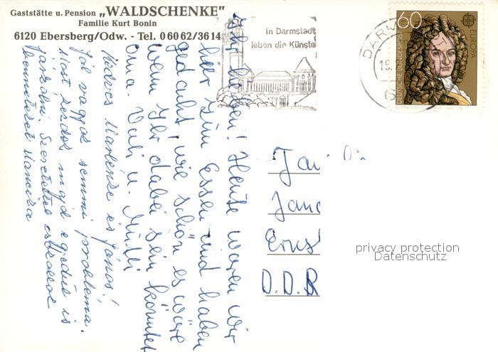 73651932 alte Postkarte Ebersberg Odenwald Gaststaette Pension Waldschenke postalisch gelaufen Erhaltung siehe scans [WerneD78] KatCode: 11110006437006