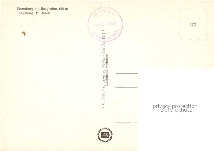 73180703 Ebersberg Rhoen Blick zur Ebersburg Burgruine postalisch nicht gelaufen Erhaltung siehe scans [FriedD77] KatCode: 11110006631004