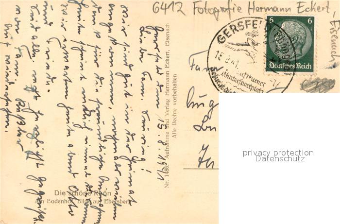 73692707 alte Postkarte Ebersburg Am Bodenhof Blick auf den Ebersberg Serie Die schoene Rhoen Landschaftspanorama postalisch gelaufen Erhaltung siehe scans [FriedD77] KatCode: 11110006631004