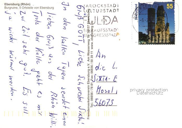 73213674 alte Postkarte Ebersburg Burgruine und die 5 Ortsteile Wappen postalisch gelaufen Erhaltung siehe scans [FriedD77] KatCode: 11110006631004