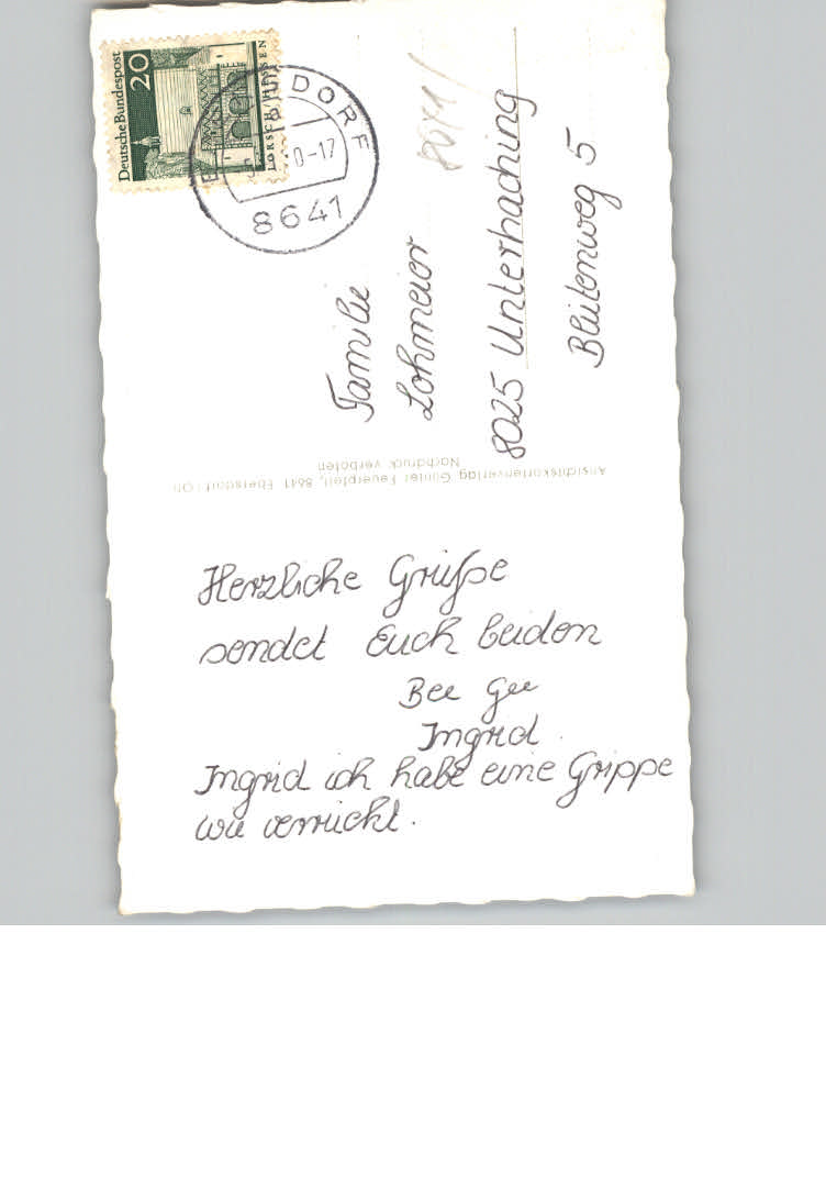 31169254 Ebersdorf Kronach postalisch nicht gelaufen KatCode: 11110009476152