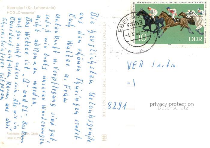 73743644 alte Postkarte Ebersdorf Thueringen HOG Orangerie postalisch gelaufen Erhaltung siehe scans [WerneD78] KatCode: 11110016075135