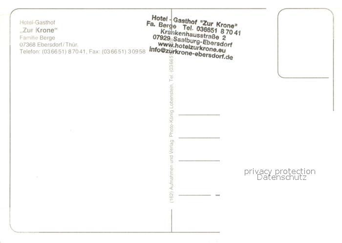 73654184 Ebersdorf Thueringen Hotel Gasthof Zur Krone Restauran Hallenbad Landschaftspanorama postalisch nicht gelaufen Erhaltung siehe scans [FriedD77] KatCode: 11110016075135