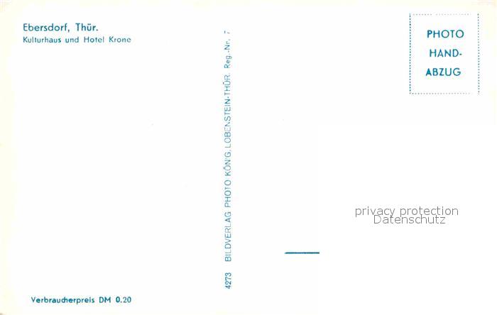 72728797 Ebersdorf Thueringen Kulturhaus und Hotel Krone Handabzug postalisch nicht gelaufen Erhaltung siehe scans [FriedD77] KatCode: 11110016075135