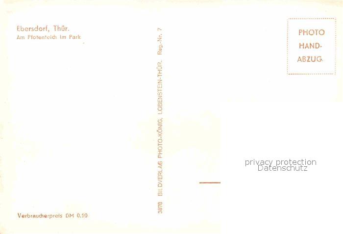 72728800 Ebersdorf Thueringen Partie am Pfotenteich im Park Handabzug postalisch nicht gelaufen Erhaltung siehe scans [FriedD77] KatCode: 11110016075135