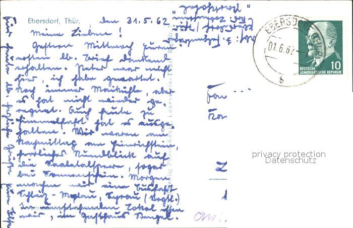 72390672 alte Postkarte Ebersdorf Thueringen Teilansicht postalisch gelaufen Erhaltung siehe scans KatCode: 11110016075135
