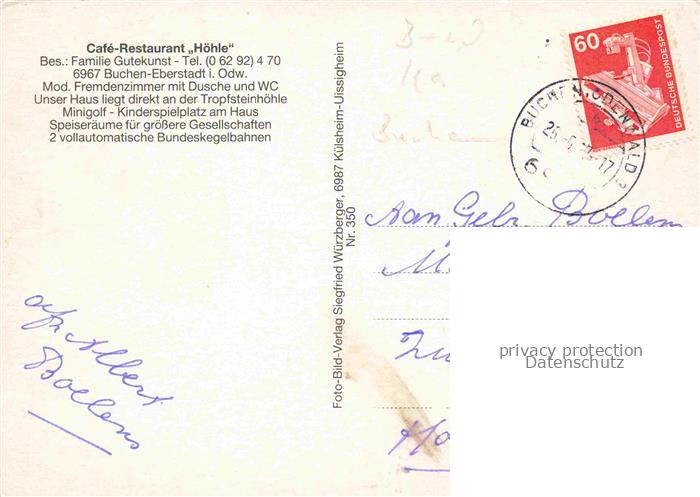 74043169 alte Postkarte Eberstadt Baden Cafe Restaurant Hoehle Tropfsteinhoehle Gastraeume postalisch gelaufen Erhaltung siehe scans [WerneD78] KatCode: 11110008225014