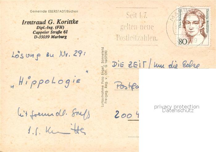 73740569 alte Postkarte Eberstadt Baden Fliegeraufnahme postalisch gelaufen Erhaltung siehe scans [WerneD78] KatCode: 11110008225014
