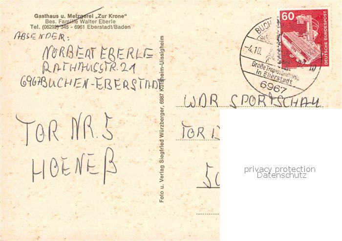 72747089 alte Postkarte Eberstadt Baden Gesamtansicht Gasthaus Metzgerei Tropfsteinhoehle Schloss postalisch gelaufen Erhaltung siehe scans [FriedD77] KatCode: 11110008225014