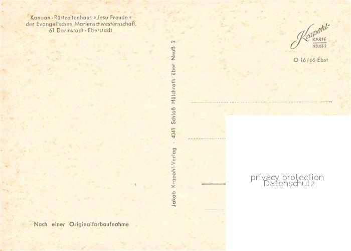 72862254 Eberstadt Darmstadt Kanaan-Ruestzeitenhaus Jesu Freude postalisch nicht gelaufen Erhaltung siehe scans [LiesaD40] KatCode: 11110006411000