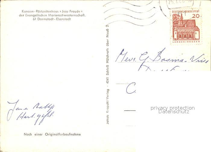 72378724 alte Postkarte Eberstadt Darmstadt Kanaan Ruestzeitenhaus Jesu Freude postalisch gelaufen Erhaltung siehe scans KatCode: 11110006411000