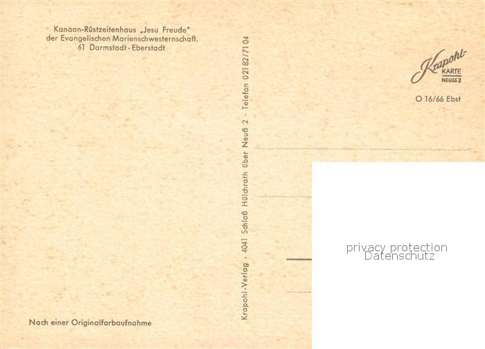 73244129 Eberstadt Darmstadt Kanaan Ruestzeitenhaus Jesu-Freude Marienschwesternschaft postalisch nicht gelaufen Erhaltung siehe scans [LiesaD40] KatCode: 11110006411000