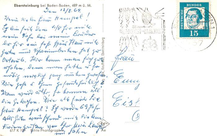 73886681 alte Postkarte Ebersteinburg Fliegeraufnahme postalisch gelaufen Erhaltung siehe scans [FriedD77] KatCode: 11110008211000