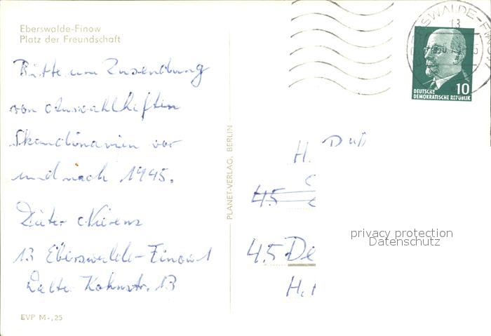 72114559 alte Postkarte Eberswalde Platz der Freundschaft Springbrunnen Kirche postalisch gelaufen Erhaltung siehe scans KatCode: 11110012060052