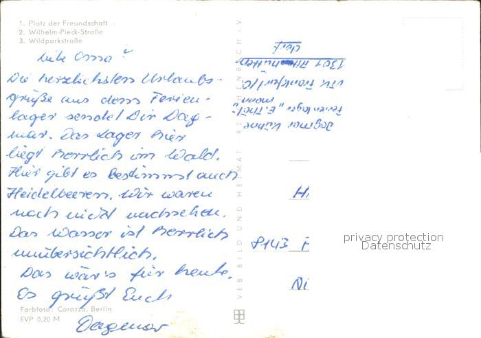 72026695 Eberswalde Platz der Freundschaft Wilhelm- Pieck- Strasse Wildparkstrasse postalisch nicht gelaufen Erhaltung siehe scans KatCode: 11110012060052
