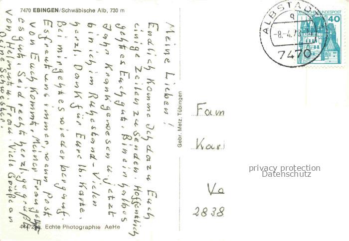 74105220 alte Postkarte Ebingen Albstadt BW Panorama Blick ueber die Stadt postalisch gelaufen Erhaltung siehe scans [FriedD77] KatCode: 11110008417079
