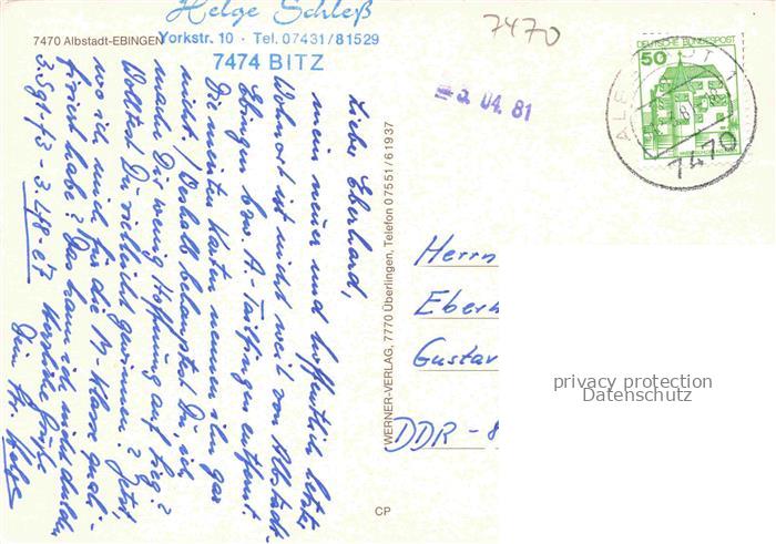 74043420 alte Postkarte Ebingen Albstadt Stadtzentrum postalisch gelaufen Erhaltung siehe scans [FriedD77] KatCode: 11110008417079