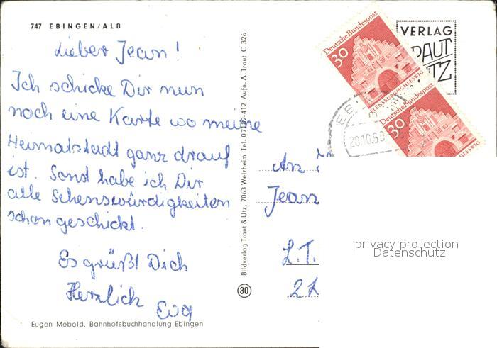 alte Postkarte Ebingen Fliegeraufnahme postalisch gelaufen Erhaltung siehe scans