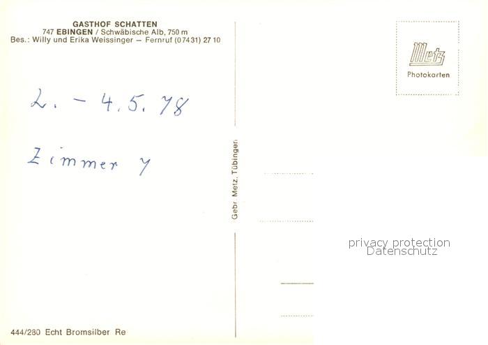 73618056 Ebingen Gasthof Schatten postalisch nicht gelaufen Erhaltung siehe scans [KathaD81] KatCode: 11110008417079