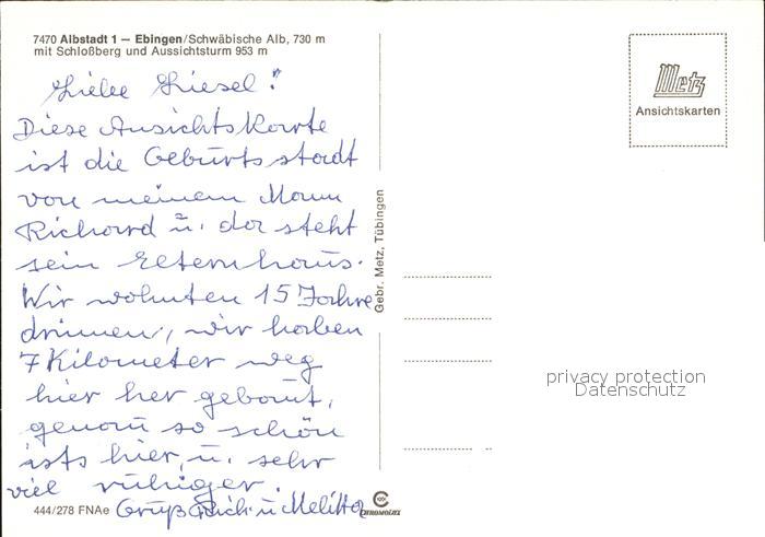 72097453 Ebingen mit Schlossberg und Aussichtsturm postalisch nicht gelaufen Erhaltung siehe scans KatCode: 11110008417079