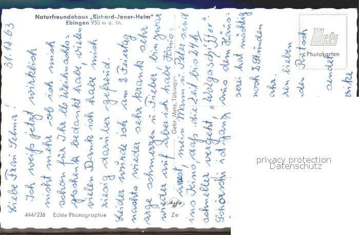 72104794 Ebingen Naturfreundehaus Richard Joner Heim Schafherde postalisch nicht gelaufen Erhaltung siehe scans KatCode: 11110008417079