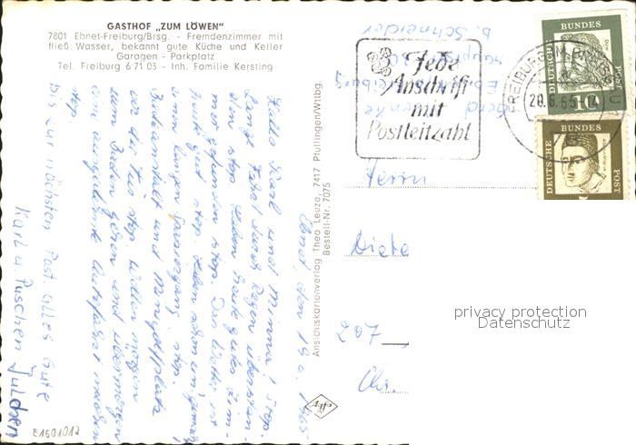 31841623 alte Postkarte Ebnet Freiburg Breisgau Gasthof zum Loewen Gastraum Fruehstueckszimmer postalisch gelaufen Erhaltung siehe scans KatCode: 11110008311000