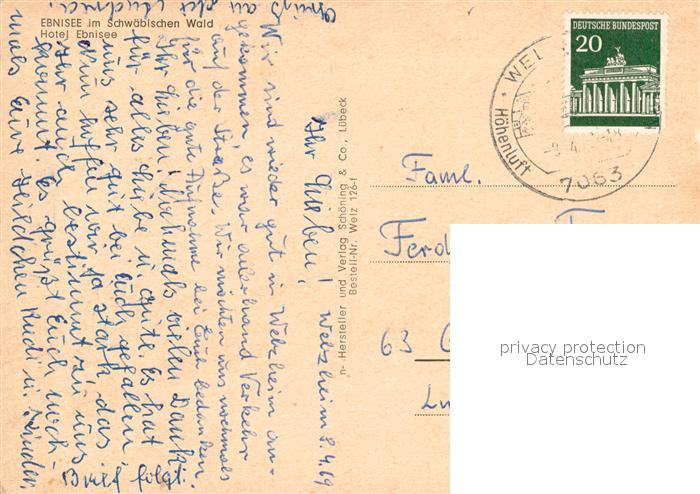 72989677 alte Postkarte Ebnisee Hotel Ebnisee postalisch gelaufen Erhaltung siehe scans [WerneD78] KatCode: 11110008119084
