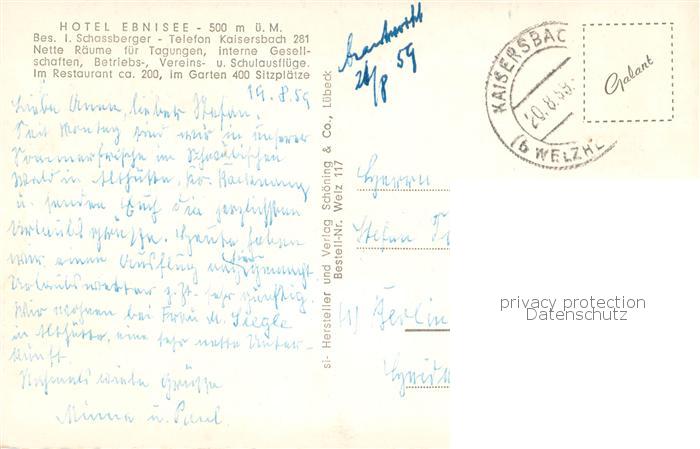 73770110 alte Postkarte Ebnisee Schwaebischer Wald Hotel Ebnisee postalisch gelaufen Erhaltung siehe scans [WerneD78] KatCode: 11110008119084