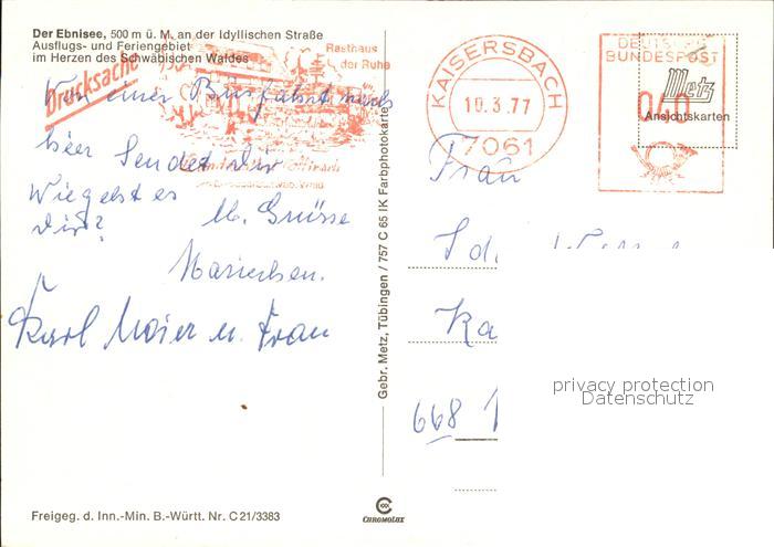 72580204 alte Postkarte Ebnisee Shwaebischer Wald Luftaufnahme postalisch gelaufen Erhaltung siehe scans [KathaD79] KatCode: 11110008119084