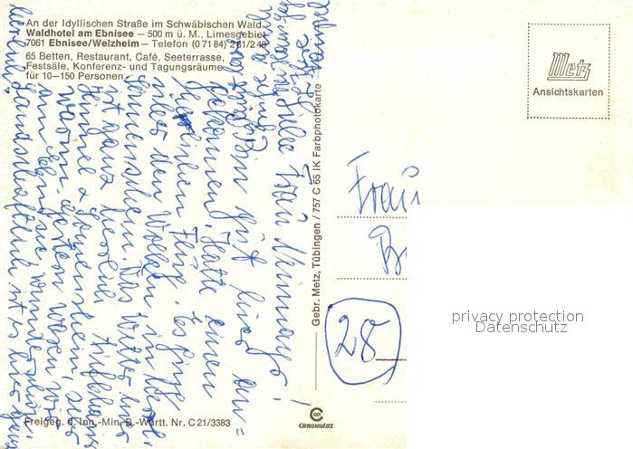72779003 Ebnisee Waldhotel Limesgebiet Fliegeraufnahme postalisch nicht gelaufen Erhaltung siehe scans [FriedD77] KatCode: 11110008119084