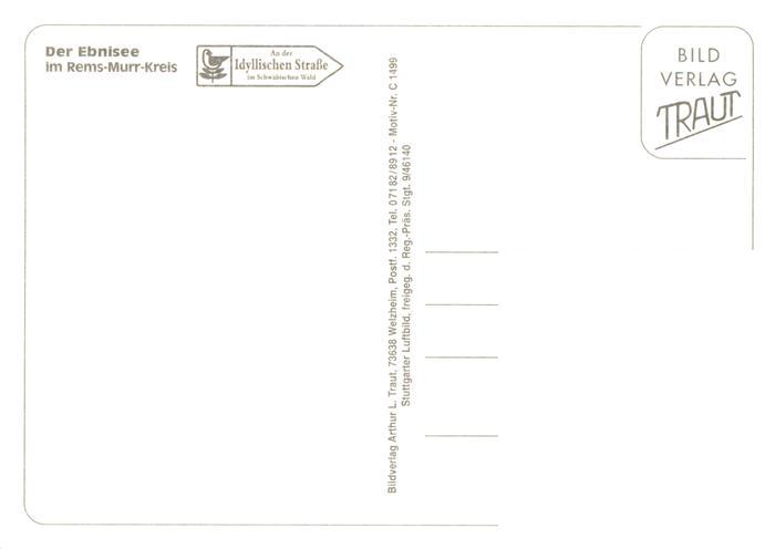 73877836 Ebnisee Welzheim Fliegeraufnahme Rems Murr Kreis postalisch nicht gelaufen Erhaltung siehe scans [WerneD78] KatCode: 11110008119084