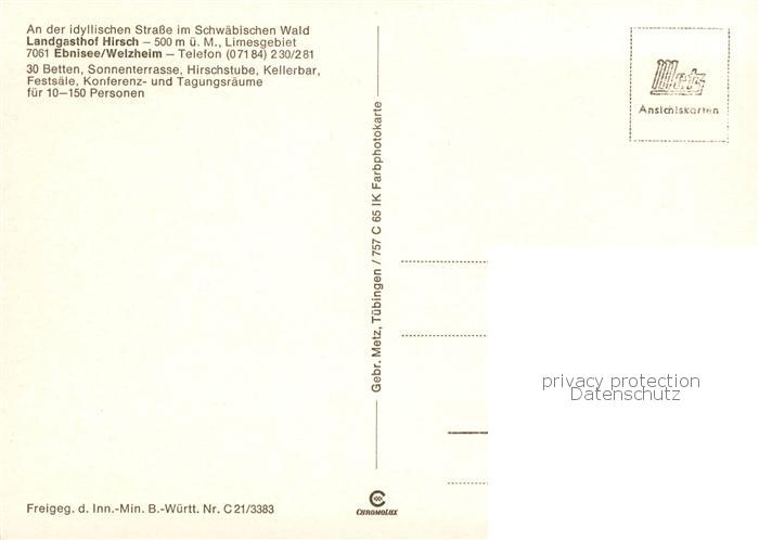 73788453 Ebnisee Welzheim Landgasthof Hirsch Fliegeraufnahme postalisch nicht gelaufen Erhaltung siehe scans [WerneD78] KatCode: 11110008119084