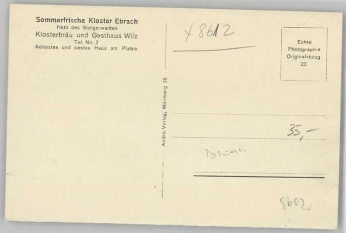 40237014 Ebrach Oberfranken Gasthaus Wilz * 1955 KatCode 11110009471128