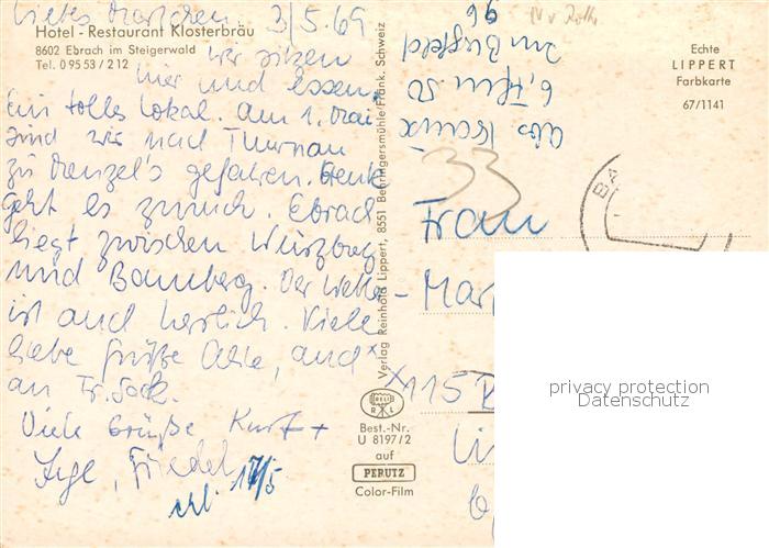 73835211 alte Postkarte Ebrach Oberfranken Hotel Restaurant Klosterbraeu postalisch gelaufen Erhaltung siehe scans [FriedD77] KatCode: 11110009471128